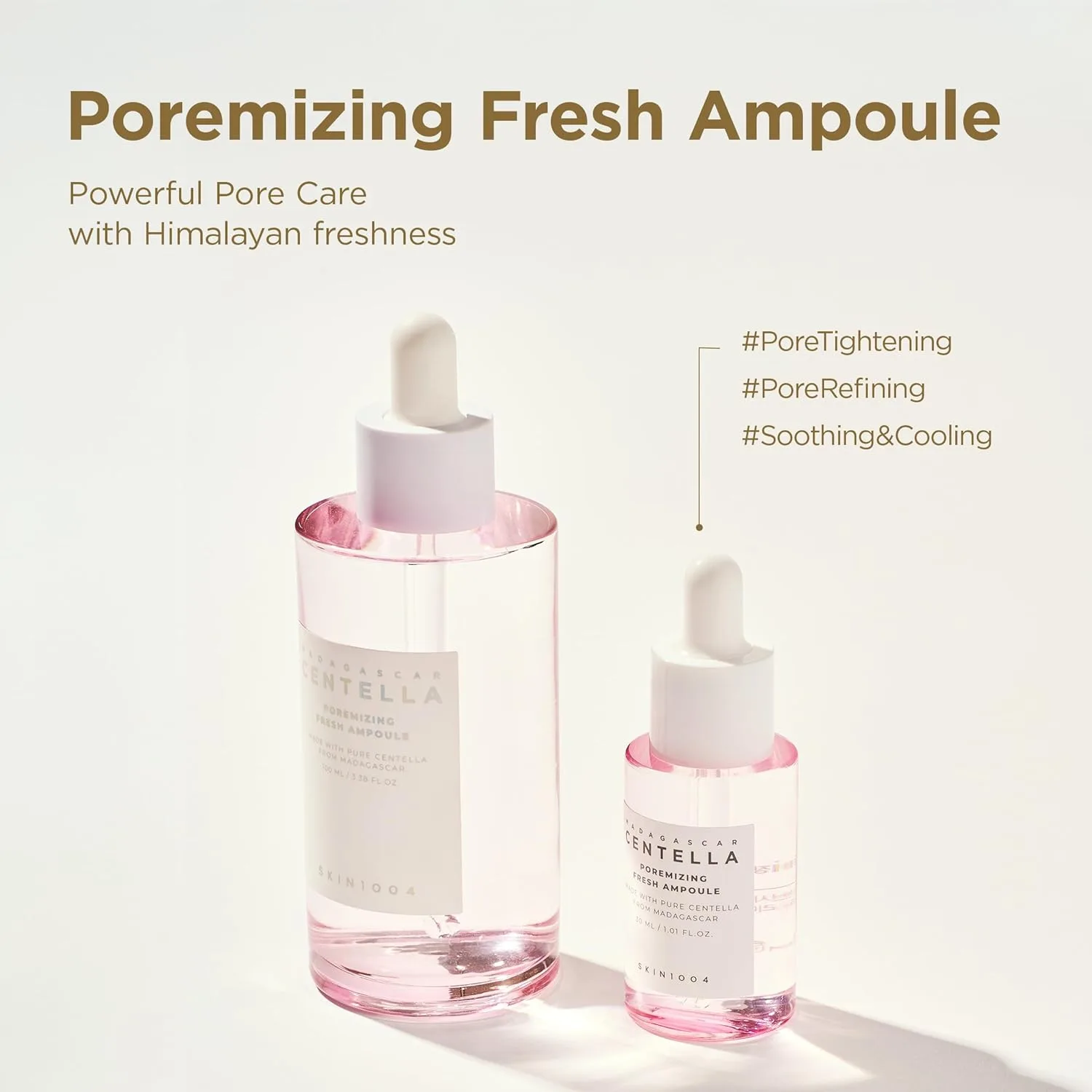 - POREMIZING FRESH AMPOULE SERUM WITH PINK SALT CARE – This Skin1004 Poremizing Centella Ampoule is powered by Himalayan Pink Salt to help remove impurities and minimize clogged pores, supporting tighter-looking skin and refined texture.