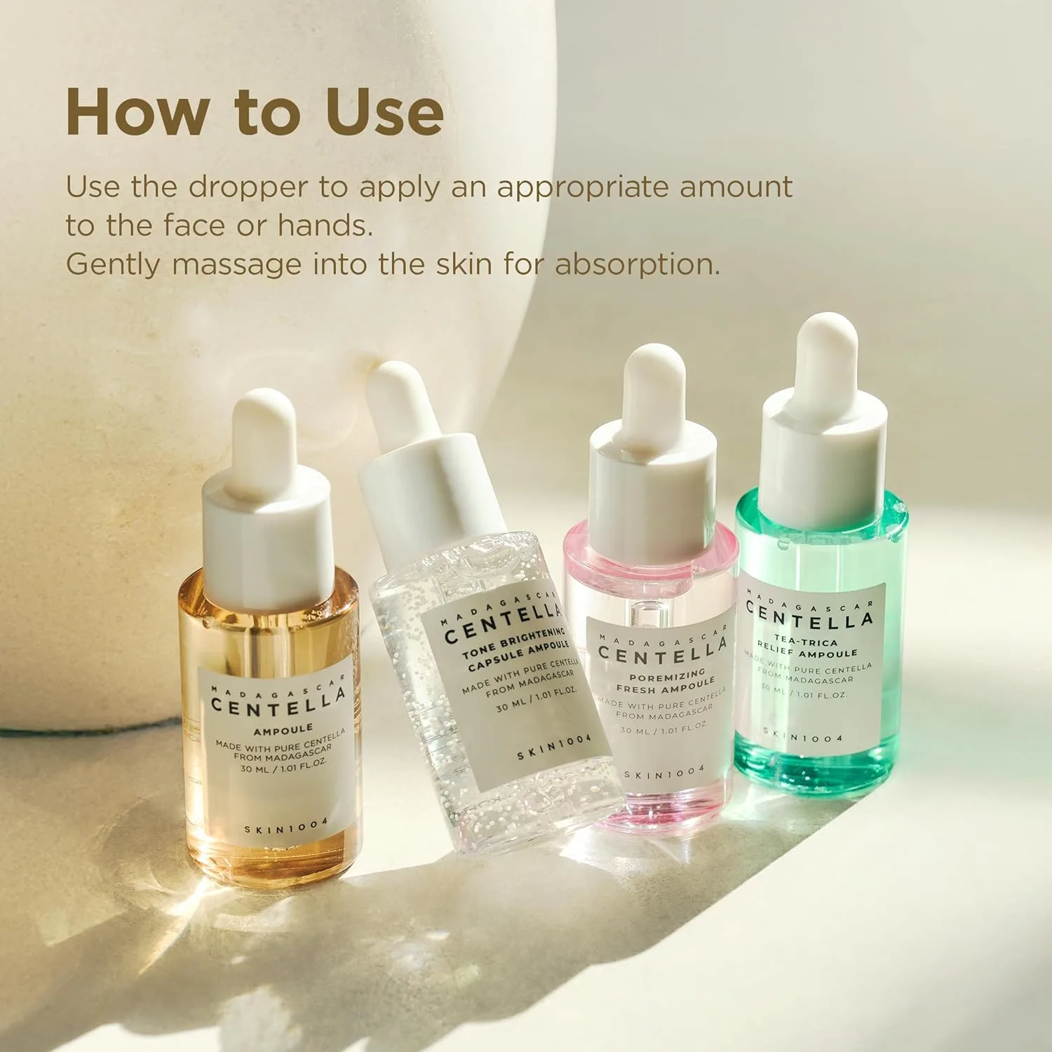 - MADAGASCAR CENTELLA AMPOULE - Formulated with pure Centella Asiatica extract sourced from Madagascar, this centella ampoule helps calm delicate skin, supports balance, and leaves a refreshed, comfortable feel.
